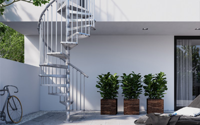 The solid and strong outdoor galvanised spiral staircase, perfect for every location and atmospheric condition.